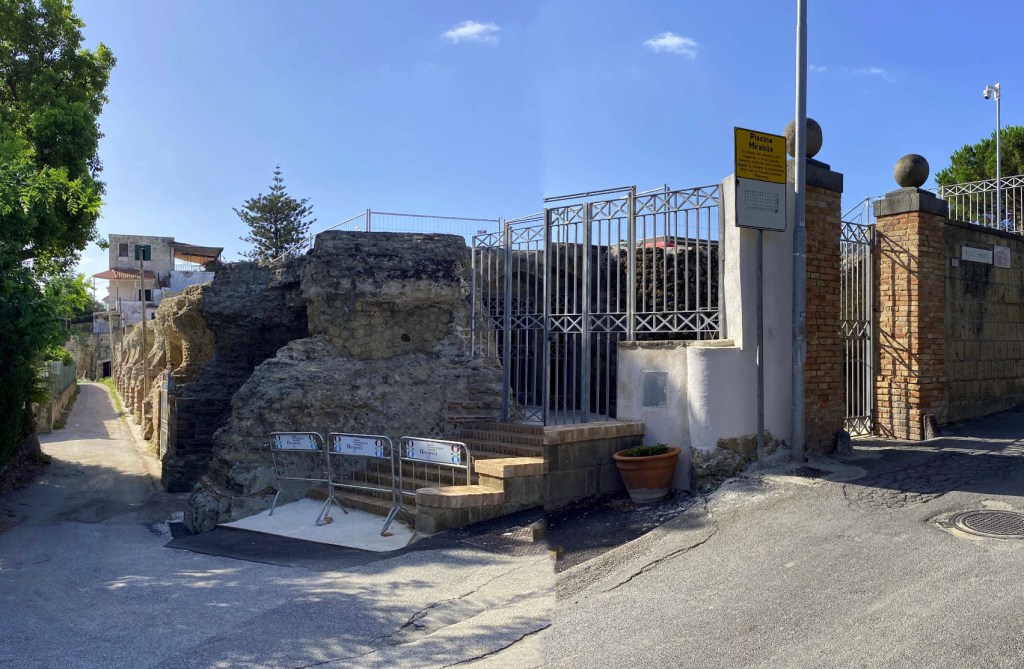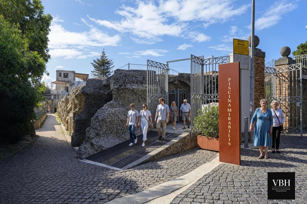 Via Roma e Via De Rosa si trasformano in un elegante asse commerciale valorizzato da una pavimentazione continua in pietra lavica con fasce laterali in tufo chiaro. Grande attenzione è stata dedicata anche ai percorsi verso le meraviglie archeologiche: Via Agrippina diventa un corridoio narrativo verso il mare , mentre Via Piscina Mirabilis si consolida come percorso turistico-archeologico, accompagnato da pannelli narrativi in corten e verde mediterraneo.